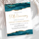 Esta elegante invitación a la fiesta por el 50 aniversario cuenta con un borde superior e inferior de agate acuático en tonos azules verde azulados con falsos purpurinas dorados. Las palabras "50 Aniversario" aparecen en un Relieve metalizado de imitación dorado brillante con letra decorativa moderna de escritura a mano. Personalizar con los nombres de los invitados de honor en un texto de color dorado y los detalles del fiesta en gris carbón sobre un fondo blanco. En el reverso aparece una imagen de agate verde azulado y dorado.