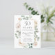 Los detalles de la celebración están rodeados de un marco floral de moda decorado con rosas blancas y hojas verdes de salvia. Aunque es un diseño tradicional, el follaje y el texto botánicos abiertos y ventilados le dan un aire contemporáneo. La invitación es un verde sabio suave.
