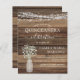 Celebración de Quinceanera Presupuestada Rústica Granja String Lights of Baby's Breath Jar Invitaciones sobre el fondo de la madera - incluye hermosa y elegante tipografía de escritura con moderna Country Farm House Sparkle para la celebración especial del 15º cumpleaños.