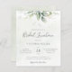 Hermosa invitación al almuerzo nupcial con eucalipto acuarela y hojas de oro.