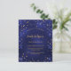 Una glamorosa invitación a la fiesta de cumpleaños para él y ella. Un fondo azul marino adornado con falsas estrellas doradas. El color azul es desigual. Personalice y agregue un nombre y detalles del fiesta. Añade año de nacimiento y año de celebración. De vuelta: fondo azul marino y estrellas doradas. 1 hoja = 1 borde impreso de invitación al borde.
