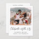 Moda, elegancia económica o invitación boda privada y posterior a la boda. La parte delantera muestra tu fotografía, "Celebrate con nosotros" en un guión elegante y tus nombres y fecha boda y ubicación en una tipografía moderna y simple. En el reverso, personaliza tu boda o invitación de ampliación con más detalle, agrega una recepción o una invitación a la fiesta, ingresa la dirección URL de tu sitio web boda para crear un código QR para que tus invitados busquen más información y para RSVP en línea, y agrega tus nombres en un guión tipo firma.