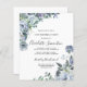 Rosas azul turbio, peonías y flores silvestres decoran una bonito floral invitación al presupuesto de 19 años. La caligrafía moderna se suma al Boho Vibe.