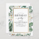 Flores de Magnolia Tropical Presupuestadas con Palm de Verdor Floral y Relieve metalizado dorado Faux Invitaciones de Fiesta de Borde Geométrico o Verano de Cualquier Edad de Aniversario - incluye tipografía de escritura hermosa y elegante con flores botánicas tropicales modernas y vegetación para los especiales 13, 15, 16, 18, 30, 40, 50 fiesta de cumpleaños número 100, 70, 80, 90.