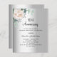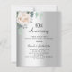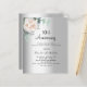Un fondo falso plateado. Decorada con flores blancas, flores de peonía y vegetación de eucaliptos de color verde acuático. Personalice y agregue sus nombres y los detalles. 1 hoja = 1 borde impreso de invitación al borde.