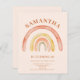 Hoja de invitaciones del décimo cumpleaños del arcoiris retro del presupuesto boho. Es fácil cambiar el texto. El arcoiris naranja, suave y a la moda. La hoja de papel es más delgada que el papel de la tarjeta.