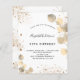 Para una elegante fiesta de cumpleaños número 50 (o cualquier edad). Un elegante fondo blanco decorado con eucaliptos dorados y un polvo falso purpurina dorado. Personalizar y un nombre y detalles del fiesta. Letras de color negro.