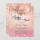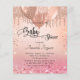 Para una elegante ducha de bebé. Fondo de degradado de color dorado y rosa pálido subió. Decorada con oro rosa, goteos en purpurina de imitación rosada, pinturas y globos. Personalice y agregue el nombre de la novia para ser y los detalles del fiesta. El nombre y el texto: Baby Shower se escriben con un guión de estilo con letras a mano