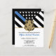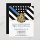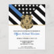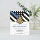 Honren la dedicación y el duro trabajo de un nuevo agente de la policía con esta invitación a graduarse de la policía personalizable. Con una insignia de la policía y una bandera de la fuerza policial con audaces rayas blancas y negras y una orgullosa delgada línea azul, este diseño simboliza fuerza, servicio y sacrificio. La invitación se personaliza con el nombre del graduado y los detalles de su fiesta, lo que lo convierte en un recuerdo memorable para amigos, familiares y colegas. Perfecto para celebrar la graduación, promoción o hito de una academia de policía en la carrera de un futuro oficial. Invite a sus invitados con estilo y muestre su apoyo al miembro más nuevo de la comunidad de la delgada línea azul.