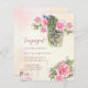 Invitación presupuestal de roses rosados rosados de pavo real victorianos, con el palacio indio en segundo plano.