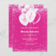 Un fondo rosado caliente. Decorada con confeti rosa y globos blancos. Texto blanco. Personalice y agregue un nombre y detalles del fiesta. 1 hoja = 1 borde impreso de invitación al borde.