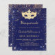 Para una elegante Mascarada, 50 años (o cualquier edad) de cumpleaños. Un elegante fondo azul marino. Decorado con un polvo falso purpurina dorado y una máscara de mascarada. Personalice y agregue un nombre, edad y detalles del fiesta. El nombre se escribe con un guión de estilo con letras a mano