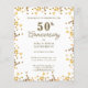 Invitación presupuestal a los 50 años de las Gold Stars Presenta delicados cortes de estrellas y de corazón de amor de oro. Personalice su información de 50 años dorados con elegantes letras de oro.