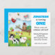 Un precio económico menor 4,5" x 5,6" alternativa. Disponible en un ALMACENAMIENTO DE TARJETAS SEMI-GLOSS de 110 lb que es la opción predeterminada (más grueso para las invitaciones), O UN ALMACENAMIENTO DE PAPELES DELGADOS SATIN FINISH DE 80 lb (ideal para los gabinetes). Los sobres son un extra opcional y son algo más grandes que el tamaño de la tarjeta. Aquí hay una colorida escena de un patio de granja con bonitos animales para invitar a sus invitados a la celebración de su primer cumpleaños. Personalizar fácilmente el texto de delante y atrás.