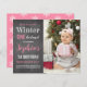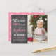 Una cédula festiva "Winter Onederland" para invitar a invitados a la fiesta de cumpleaños de tu niñita. A la izquierda, personalice el texto en blanco y rosa sobre un fondo de pizarra decorado con sutiles copos de nieve grises. Personalizar la mitad derecha de la tarjeta con una foto de su chica de cumpleaños. La parte posterior de la tarjeta presenta un alegre patrón de copo de nieve rosa y blanco que se coordina con el texto.