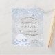 Para una elegante Quinceañera, 15 años. Un falso fondo metálico plateado. Decorada con un polvo azul falso purpurina y un vestido para un fiesta de temática invernal. Personalice y agregue un nombre, edad y detalles del fiesta. El nombre se escribe con un guión de estilo con letras a mano