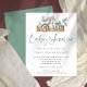 Invitación a Baby Shower Neutral de Boho Shelf Toys Sage Gender Neutral. Un precio económico menor 4,5" x 5,6" alternativa. Disponible en un ALMACENAMIENTO DE TARJETAS SEMI GLOSS 110 lb que es la opción predeterminada (recomendada para invitaciones, similar al espesor de una postal), O UN ALMACENAMIENTO DE PAPEL DE LADRÓN SATIN FINISH 80 lb (mejor para los gabinetes delgados). Ilustracion estilo Boho de estante con plantas y juguetes para bebés y elegante guión de conjunto informal para el encabezado Baby Shower en verde salvia y un fondo de sabios de coordinación en el otro lado. Puede personalizar fácilmente el resto del texto según sus necesidades y cambiar los colores de fondo si lo desea a través de la opción personalizar.