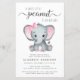 Una encantadora invitación a una ducha de bebé con presupuesto reducido con "A Sweet Little Peanut Is On Her Way" escrita en tipografía gris y moderna y escritura elegante, y una acuarela rosa pastel de un elefante de una bebé. Personalice el nombre de la madre y los detalles de la ducha en una simple tipografía gris.