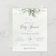 Hermosa invitación a la ducha de bebé barata con eucaliptos acuáticos y hojas de oro.