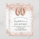 Por un elegante cumpleaños número 60. Un fondo blanco. Decorada con oro rosa, purpurina falso rosa y chispas. Personalice y agregue un nombre y detalles del fiesta. El nombre está escrito con un guión de estilo con letras a mano, número 60 con fuentes de estilo globo.