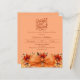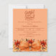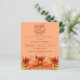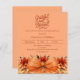 Un color de fondo atómico de mandarina. Decorada con un gran arco naranja y flores caídas. Personalice y agregue los detalles del fiesta. Guión de texto: Agradecido y bendecido. 1 hoja = 1 borde impreso de invitación al borde.