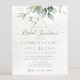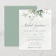Hermosa invitación de almuerzo de boda con eucalipto acuarela y hojas doradas.