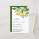Invite a los huéspedes a su evento con este papel de personalizable para bebés con ducha. Cuenta con un ramo acuático de limones y flores de limón blanco. Personalice esta invitación a la ducha de bebé limón agregando los detalles de su evento. Esta invitación botánica a la ducha para bebés es perfecta para duchas de primavera y verano.