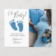 Invitación de Baby Shower azul para parejas fotográficas de presupuesto. Envíe las invitaciones a la ducha de bebé de esta elegante pareja a la familia y amigos. Están decoradas con una tipografía moderna y los pies de bebé adorables en un purpurina azul. Añade tu propia foto, nombre y detalles.