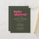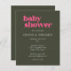 Invitación de Baby Shower verde y rosa a retro Groovy