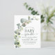 Invitaciones para Baby Sprinkle de primavera con eucalipto económico, suculentas botánicas y acuarela, neutrales en cuanto al género para bebé niño o bebé niña en fondo blanco - incluye tipografía de letra cursiva elegante y hermosa con hojas botánicas modernas y follaje para la celebración especial de la futura mamá.