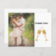 Expresar su gratitud con estilo con esta elegante tarjeta de agradecimiento, perfecta para bodas o ocasiones especiales. Con una foto romántica de una novia y un novio junto con un brillante diseño de tostadas de champán, esta carta capta la alegría de su celebración. Personalizable total con sus nombres y mensajes, es una hermosa manera de agradecer a sus invitados por compartir en su día especial."