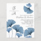 Diseño moderno y sofisticado con hoja de gingko azul en acuarela. Fácil de personalizar con tus propios detalles.