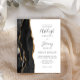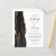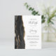 Ahorre el costo de imprimir y enviar por correo tarjetas RSVP separadas con esta elegante invitación de boda moderna y económica todo en uno. El borde izquierdo presenta un borde de ágata de acuarela negra recortado con brillo falso dorado. El texto personalizable combina escritura a mano gris carbón, copperplate y fuentes itálicas sobre fondo blanco. El reverso proporciona espacio para los detalles de la boda, junto con un código QR que los invitados pueden escanear para visitar su sitio web y responder.