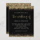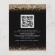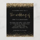 Una alternativa de presupuesto con relación calidad-precio en un tamaño más pequeño de 4,5 x 5,6” semi brillo de 110lbs de peso, que tiene un grosor similar al de una postal (sin embargo, no es apta para usar como postal). POR FAVOR, TENGA EN CUENTA que hay UNA invitación por hoja. Invitación de boda con código QR de purpurina dorada negra. Agregue su código QR en el sitio web de su boda en el reverso para que sus invitados puedan responder y ver todos los detalles en línea sin necesidad de sobres separados. Una tipografía de conjunto elegante está en dorado para el título principal "La boda de" que complementa el resto del texto que puede personalizar fácilmente, con bordes de confeti dorado con purpurina en la parte superior e inferior y también en el reverso.
