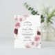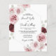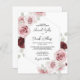 Esta invitación de boda floral rosa con tono rojizo borgoña económico está de moda en una suave paleta de colores de rosa claro, rojo borgoña, verde salvia y blanco. Cuenta con hermosas y detalladas rosas románticas pintadas a la acuarela y flores con follaje de eucalipto. Esta encantadora paleta de colores es perfecta para una boda de primavera, verano u otoño. Personalízala con todos los detalles de tu boda. La parte trasera incluye un código QR de boda para que tus invitados respondan en línea.