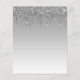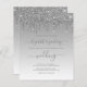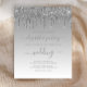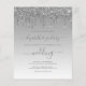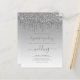 Un diseño moderno y elegante con un fondo gris ombre y un borde superior de gotas de purpurina plateadas. La palabra "boda" y los nombres de pila de la pareja aparecen en letra de caligrafía minúscula con florituras decorativas al principio y al final, y el texto restante en letra sans serif. El fondo ombre y el borde de gotas de purpurina plateadas se repiten en el reverso. (Para mantener las florituras, reemplace solo las letras, dejando los símbolos en su lugar).
