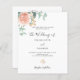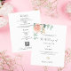 Un fondo blanco chic. Decorado con una flor rosa y dorada rosa, flor de rosa y hojas de eucalipto coloreadas con acuarela verde, ramitas, follaje y una ramita dorada falsa. Personaliza y agrega tus nombres y detalles de la boda. Letras negras y verdes.