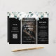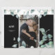 Tipografía moderna elegante monograma verde eucalipto verde 2 fotos presupuesto asequible todo en uno tríptico frente y dorso invitación de boda con código QR para responder en línea y detalles. +++++++++ Fácil de personalizar con tu información y 1 o 2 fotos de compromiso.