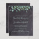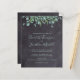 Invite a amigos y familiares a tu boda con estas tarjetas postales de invitación de boda rústicas y económicas con pizarra y eucalipto. Estas tarjetas de invitación de boda económicas tienen una opción de sobre. Personalice con nombres, fecha de la boda, ubicación. Agregue cualquier otra información en el reverso. Estas invitaciones de boda de vegetación únicas harán una impresión duradera, ¡sus invitados se asegurarán de guardar la fecha! DERECHOS DE AUTOR © 2020 Judy Burrows, Black Dog Art - Todos los derechos reservados. Invitación de boda de eucalipto de vegetación económica