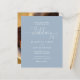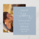 Esta elegante invitación de boda de presupuesto se puede personalizar con los detalles de su celebración en tipografía chic en un fondo de polvo azul y su foto especial en el reverso. Diseñado por Thisisnotme©