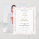Los detalles de la invitación de su celebración de boda de presupuesto especial están configurados en tipografía moderna elegante y con estilo en un panel dorado enmarcado sobre un fondo colorido de confeti de arcoíris. El reverso presenta su propia foto especial o dejar en blanco o agregar un color de fondo para adaptarse. Diseñado por Thisisnotme©
