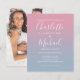 Con su foto, nombres de estilo de firma, esta elegante invitación de boda ombre rosa y azul polvoriento se puede personalizar con su información en letra chic. Diseñado por Thisisnotme©