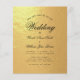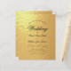 Una invitación de boda económica con texto negro sobre fondo de lámina de oro falso. La palabra Wedding y los nombres están escritos en un elegante guión caligráfico.