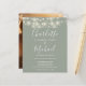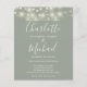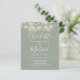 Con bonitas luces de cuerda y nombres de estilo de firma. Esta elegante invitación de boda verde sage con presupuesto puede ser personalizada con los detalles de su boda en letras elegantes y una foto especial en el reverso. Diseñado por Thisisnotme©