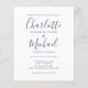 Con su foto, nombres con estilo de firma, esta elegante invitación de boda morada económica se puede personalizar con su información en letra chic. Diseñado por Thisisnotme©