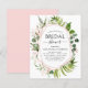 Invitaciones de Despedida de Soltera de Boda de Primavera con Eucalipto Botánico Acuarela y Rosa Dorado - Rosa Claro Geométrico en fondo blanco - incluye hermosa y elegante tipografía de guión con hojas botánicas modernas y vegetación para la celebración especial de la Novia que Será.
