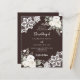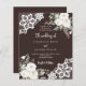 Para una boda elegante y romántica. Un fondo de color marrón bistre decorado con flores blancas, rosas y encaje blanco. Personaliza y añade tus nombres y detalles.