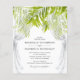 Invitaciones de boda con tema de playa tropical económicas con un fondo blanco elegante que se puede cambiar a cualquier color, cortinas de boda transparentes, hojas de palmera, luces de cuerda y una plantilla de boda elegante que es fácil de personalizar.