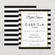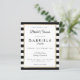 Con un clásico fondo de rayas negras y blancas, esta elegante invitación de boda económica presenta un borde de lámina dorada falsa que enmarca los detalles de la boda en tipografía elegante. Diseñado por Thisisnotme©