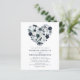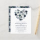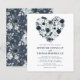 Invitaciones de boda personalizadas de color azul marino y azul polvoriento con un fondo blanco de moda que se puede cambiar a cualquier color, una flor de acuarela azul rústica en forma de corazón y una plantilla de boda moderna.